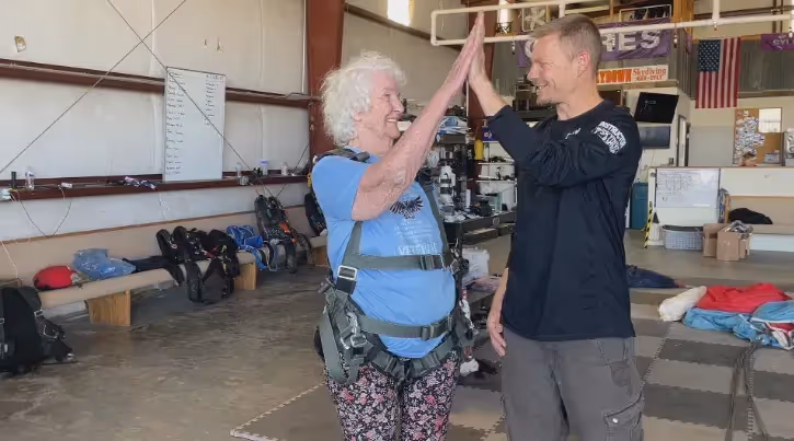 After landing, Dorie immediately asked, "Can we go again?" Her jump not only fulfilled her dream but also inspired others. "When I actually saw her come down and she had the smile of a lifetime on her face, it was absolutely just exhilarating," Jordan said.