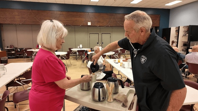 "People absolutely love his special programs. They come on Wednesdays just for that," said Harmon. "He brings joy to the dining room, a little bit of nostalgia, some competition prizes, and a lot of these prizes, he's funded out of his own pocket."